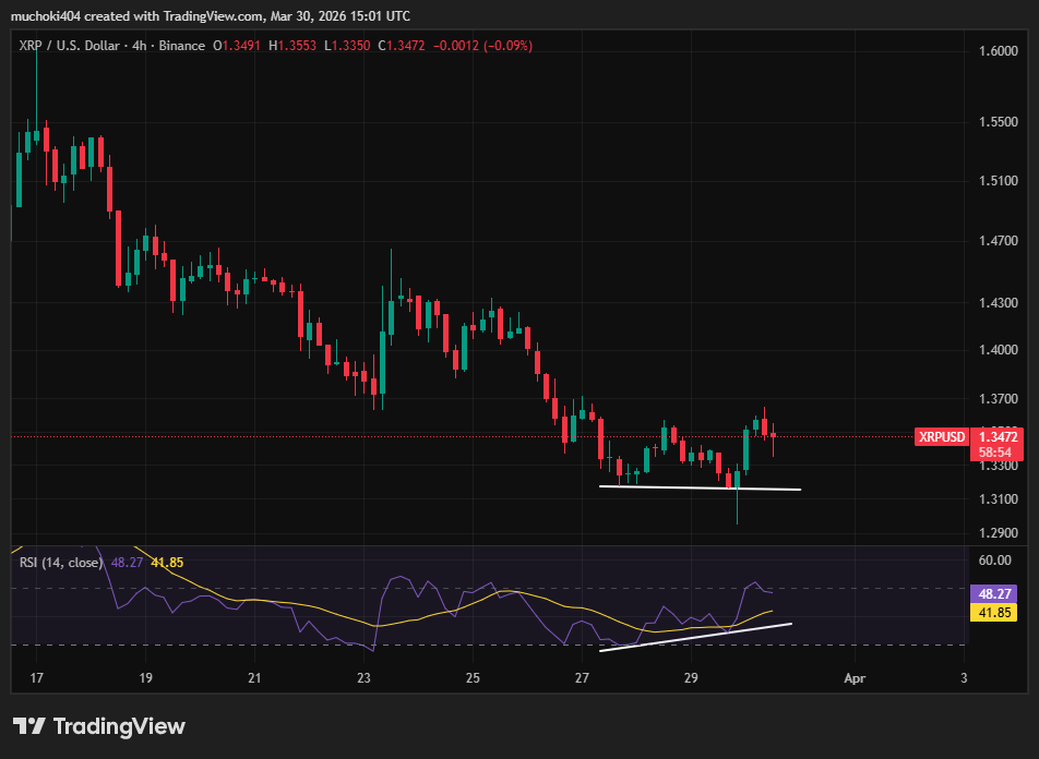 Між 22 березня і 30 березня баланс акаунтів великих власників XRP збільшився з приблизно 11,05 мільярда токенів, що становило близько $15,47 мільярда, до приблизно 11,17 мільярда токенів, що оцінювалися в $14,86 мільярда на момент публікації, за даними Santiment метрик.
