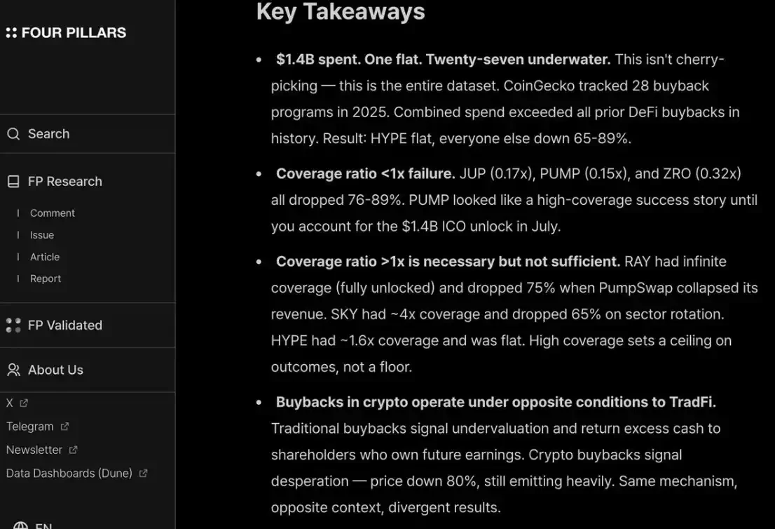 اس کے علاوہ، چھوٹے سرمایہ کاروں اور ہیج فنڈ دونوں کو خوش رکھنے کے لیے، آپ کو HYPE کی طرح مستقل اور شفاف طریقے سے ریڈمپشن کرنا ہوگا۔ جب تک آپ یہ نہیں کرتے، تو مارکیٹ اسے PUMP کی طرح سزا دے دے گی — جس کا مکمل ڈائلوشن ایوارلیشن (P/F) صرف 6 گنا ہے، کیونکہ مارکیٹ اس پر "یقین نہیں رکھتی"۔ حالانکہ، اس نے 14 ارب ڈالر کی آمدنی جو خزانہ میں جانے کی تھی، وہ جلادی ہے۔