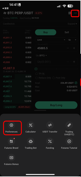 ایپ: کلک کریں "..." → "تجارتی ترجیحات" → "خطرے کی حد"
