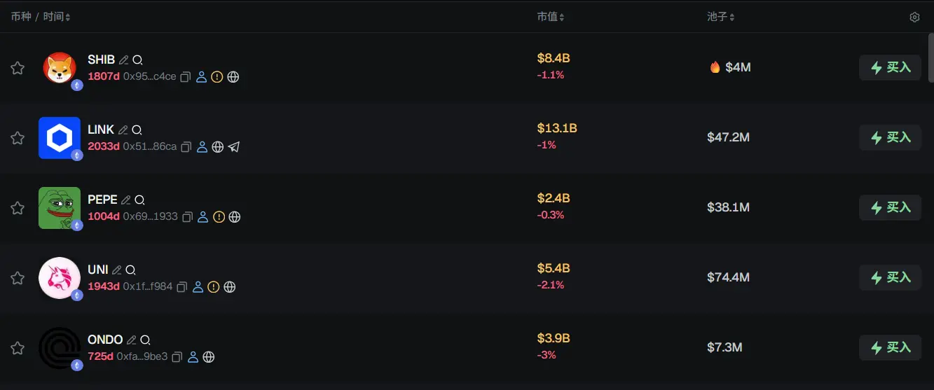 Top 5 đồng token ETH phổ biến trong 24 giờ qua là: SHIB, LINK, PEPE, UNI, ONDO
