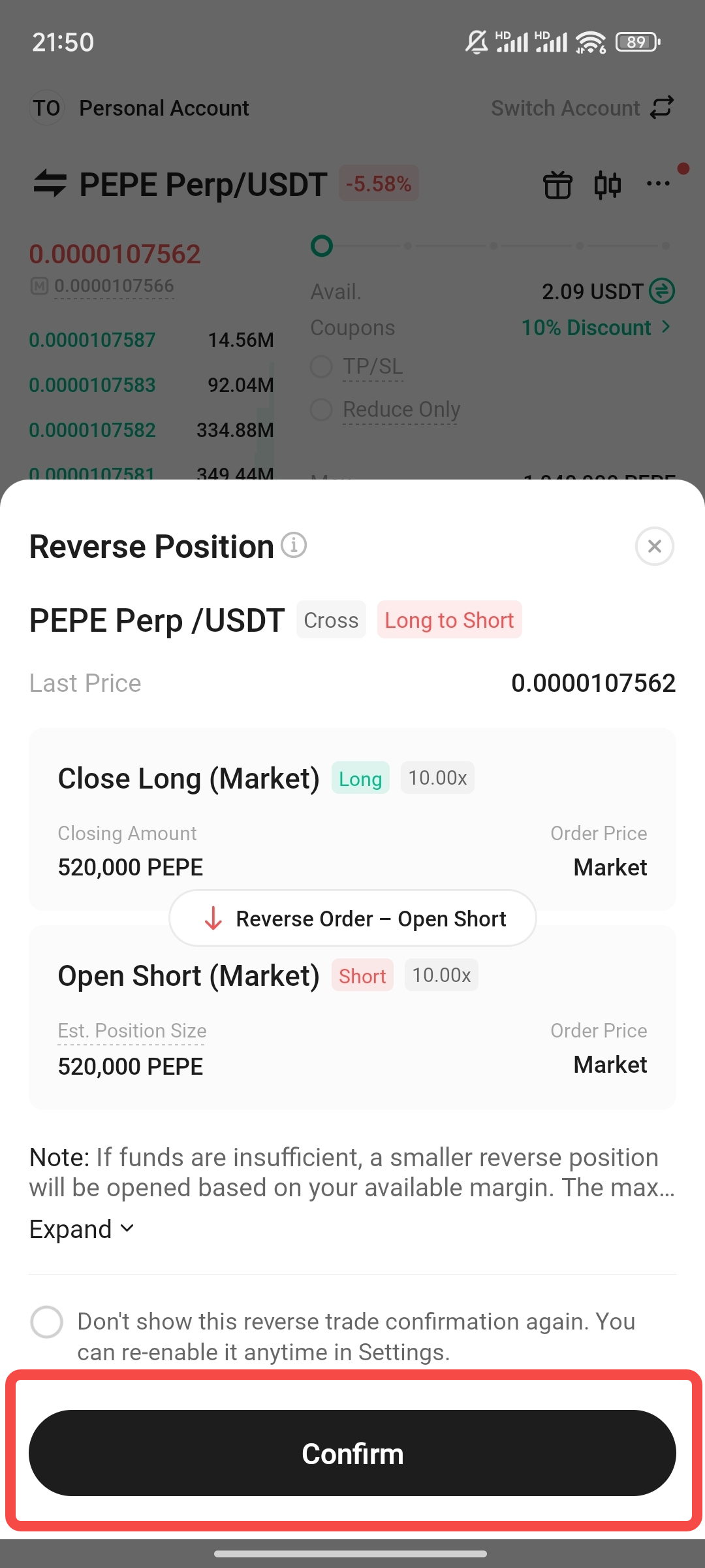 Sau khi xác nhận mọi thứ đều chính xác, hãy nhấp vào 【Xác nhận】 để đóng vị thế ngay lập tức.