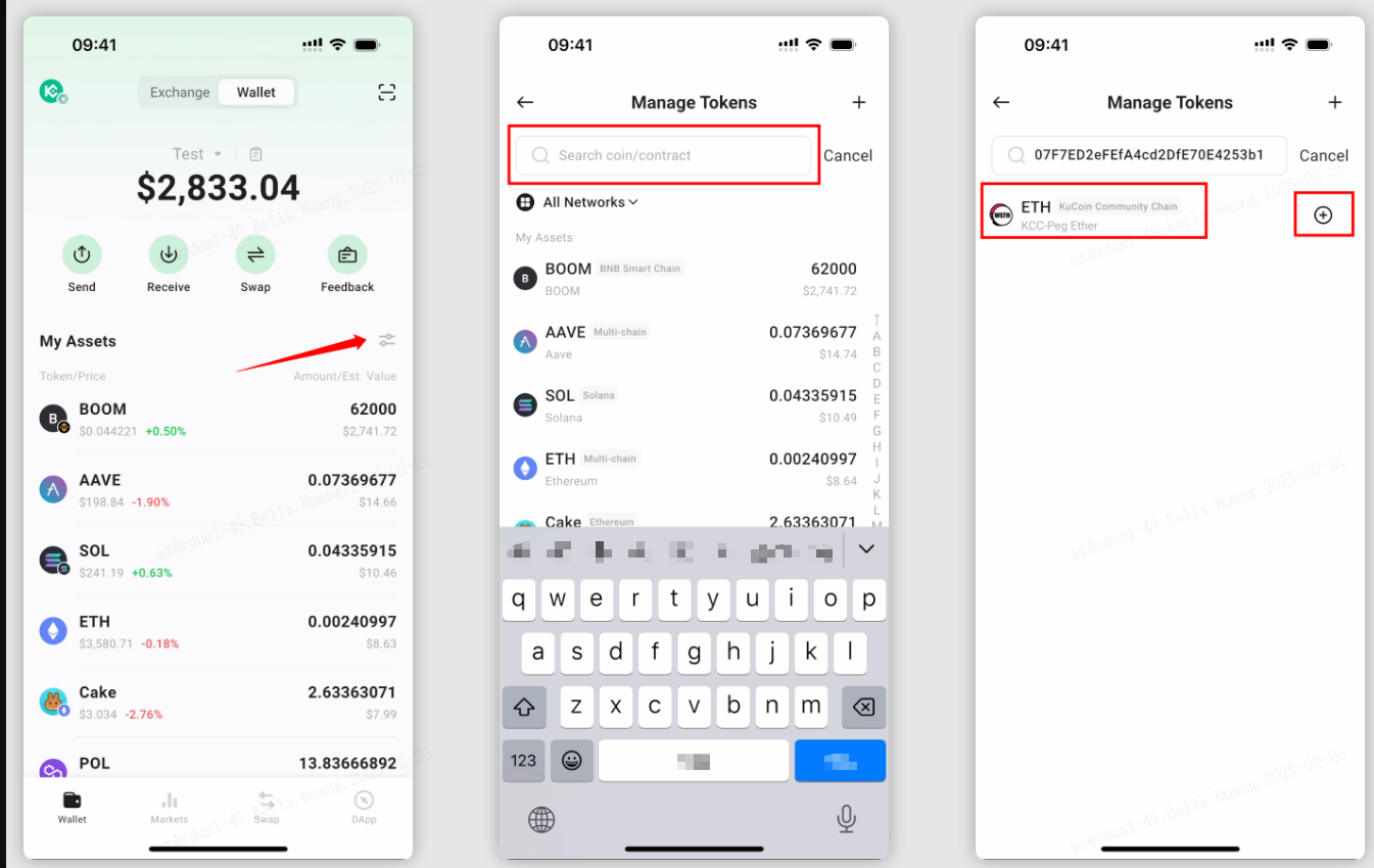 If your assets have been successfully transferred to your wallet but do not appear on the My Assets page, the token may not be enabled by default. In this case, you can manually add the token by using one of the methods below.
