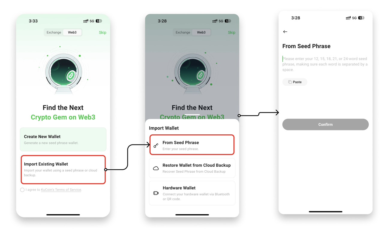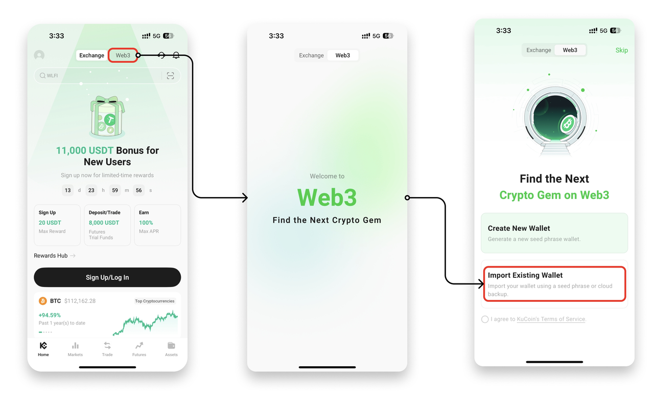 If you already have a wallet, you can easily import it into KuCoin Web3 Wallet.