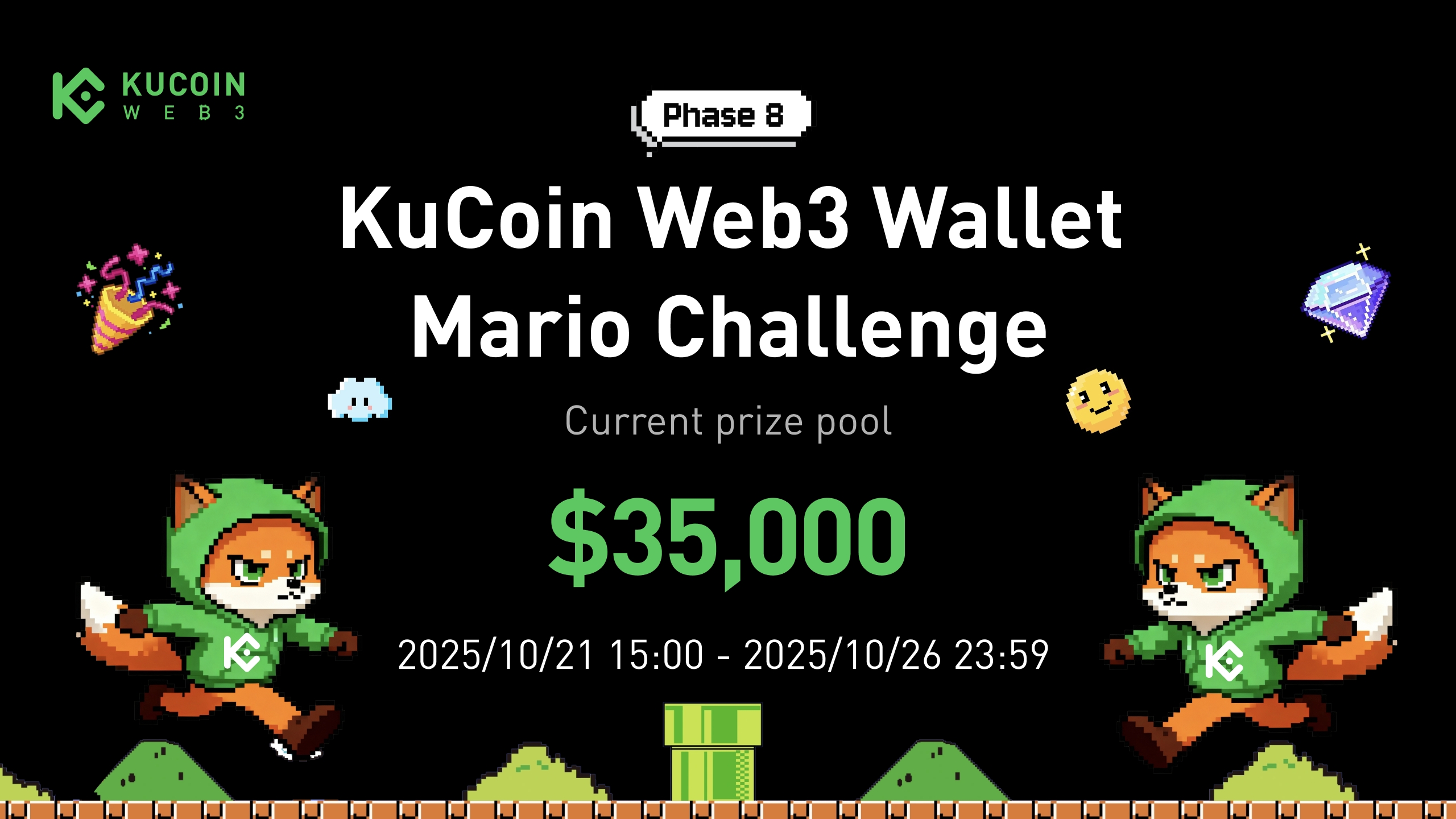 Welcome, Marios! 🎮 The KuCoin Web3 Wallet Mario Challenge Phase 8 is LIVE! Clear the following tasks to unlock prize pools, collect Bronze OATs, and advance to the Silver Challenge for even bigger rewards.