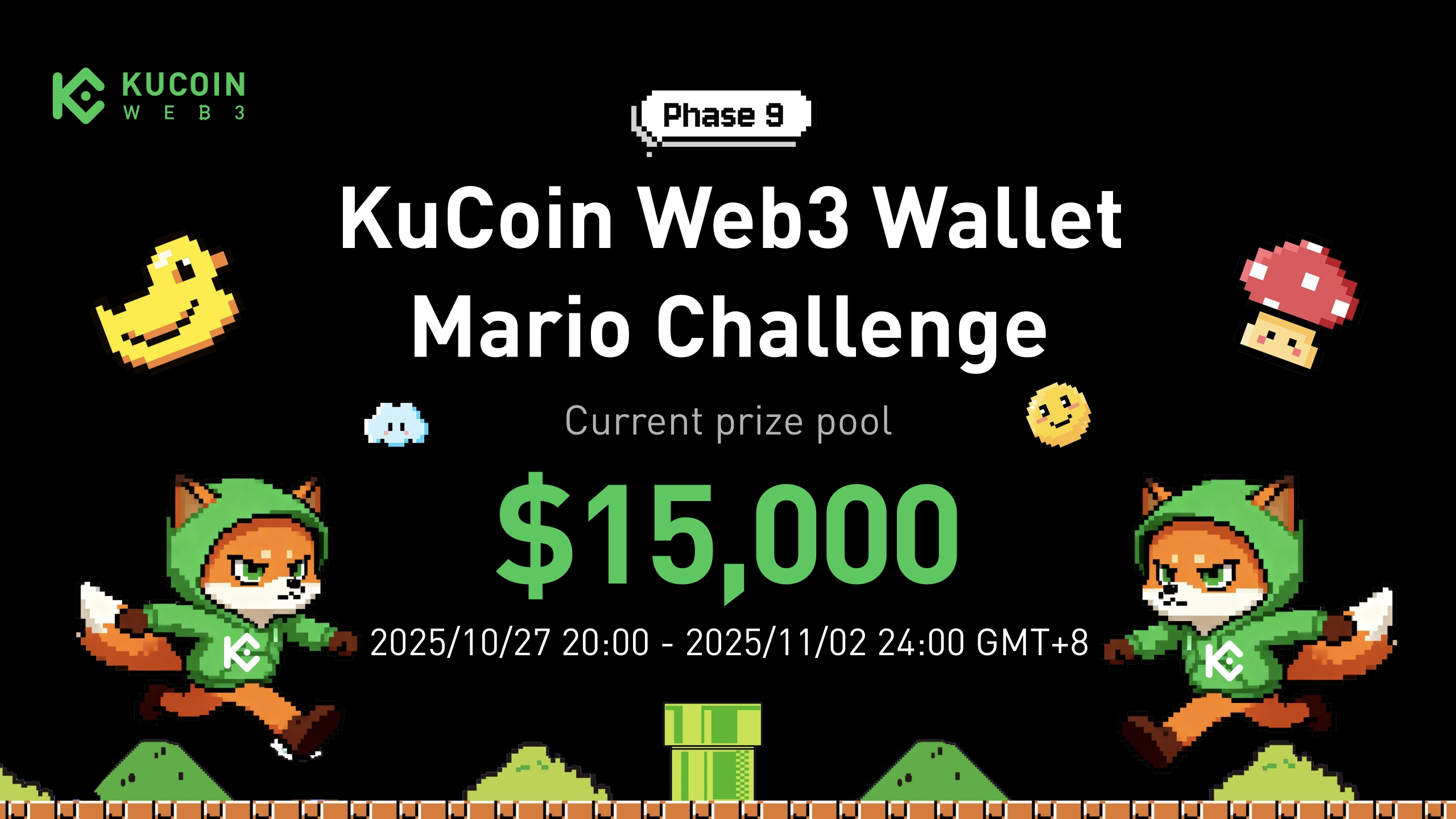 Welcome, Marios! 🎮 The KuCoin Web3 Wallet Mario Challenge Phase 9 is LIVE! Clear the following tasks to unlock prize pools.