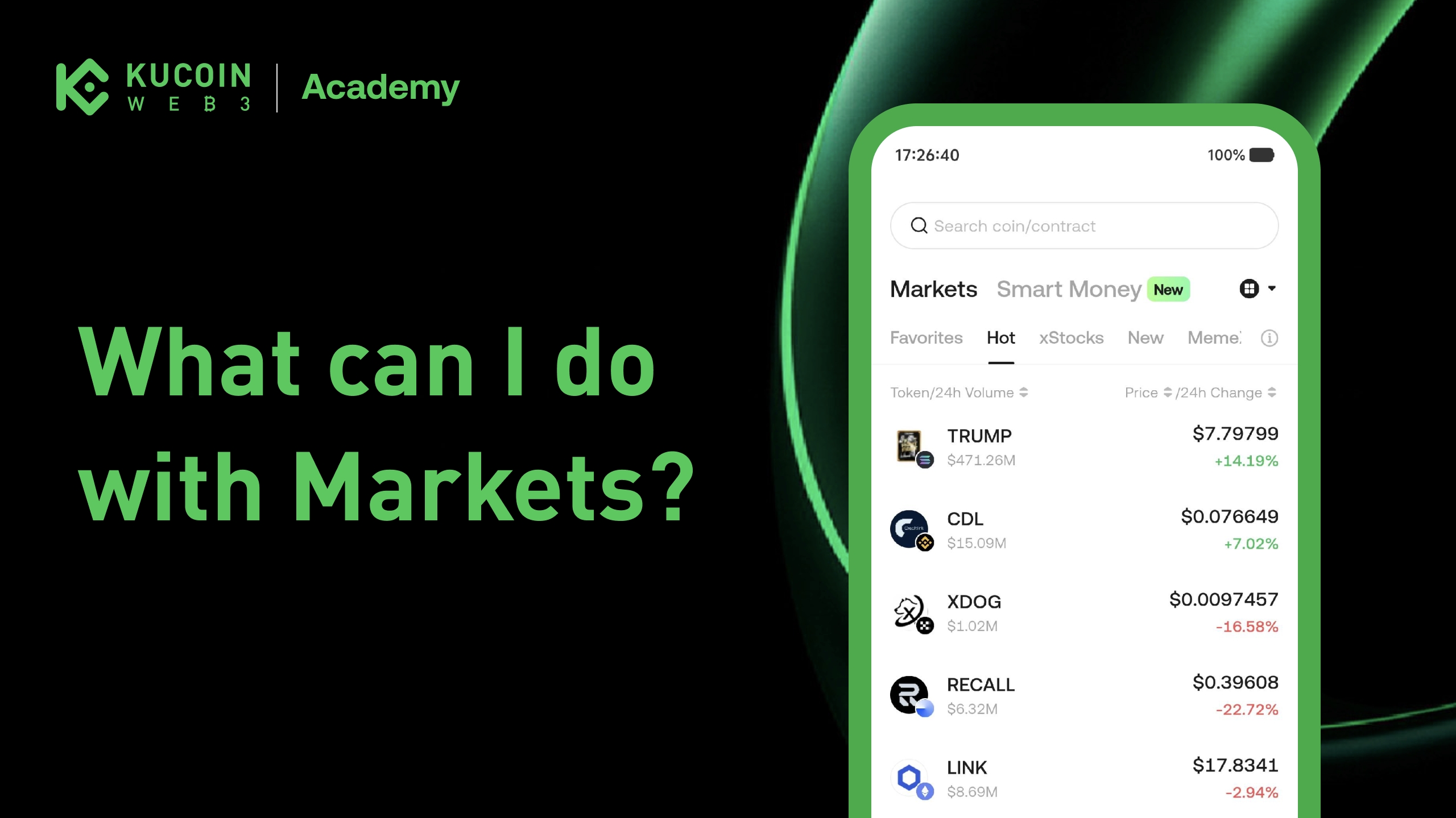 The Markets section in the KuCoin Web3 Wallet is your go-to place for discovering on-chain trends, tracking token performance, and exploring emerging assets — all in one place. Whether you’re a De-Fi investor, memecoin hunter, or a cross-chain trader, Markets helps you stay ahead of the curve.