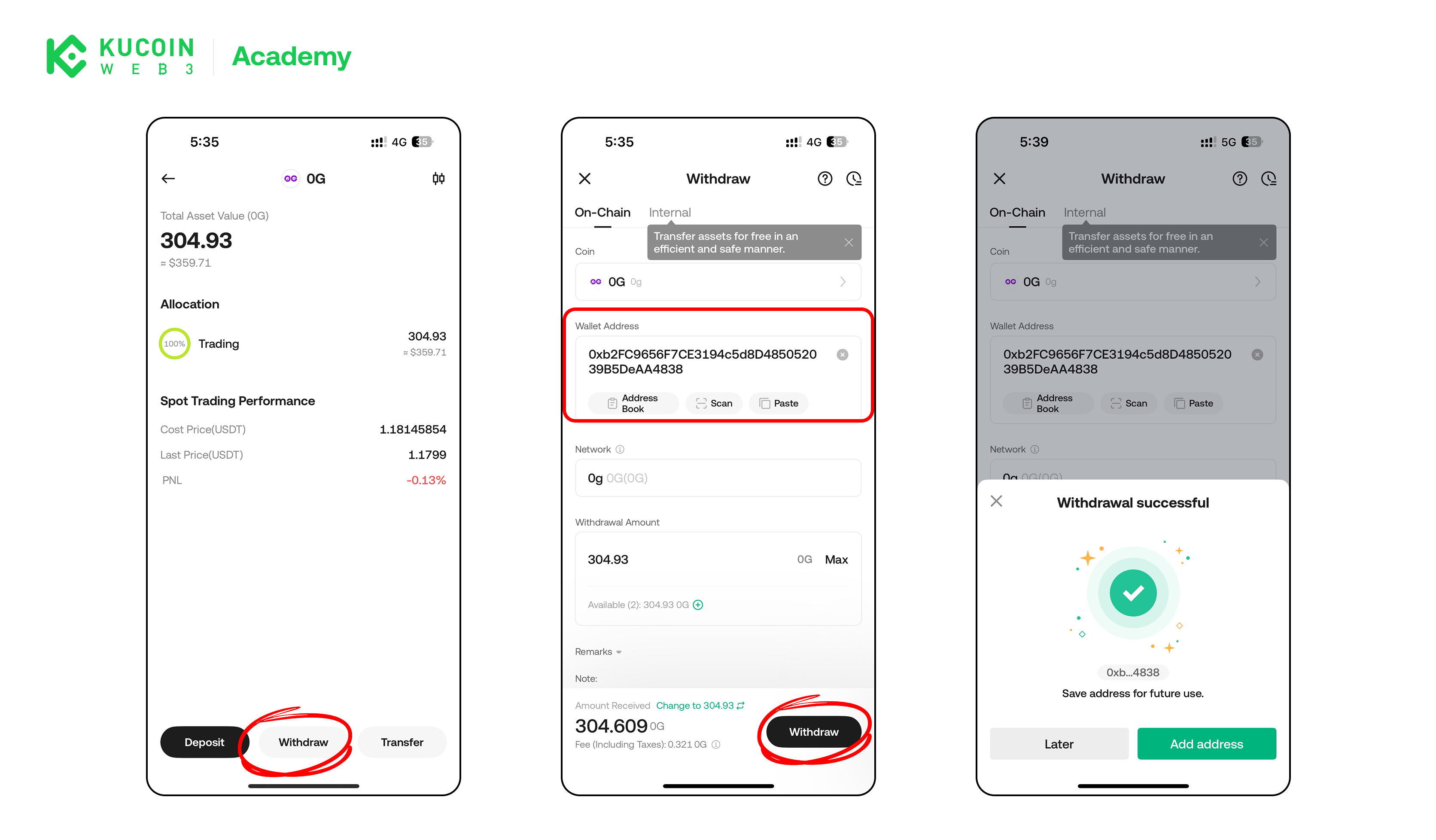 3.2 Withdraw 0G to your KuCoin Web3 wallet, see how to find your wallet address here