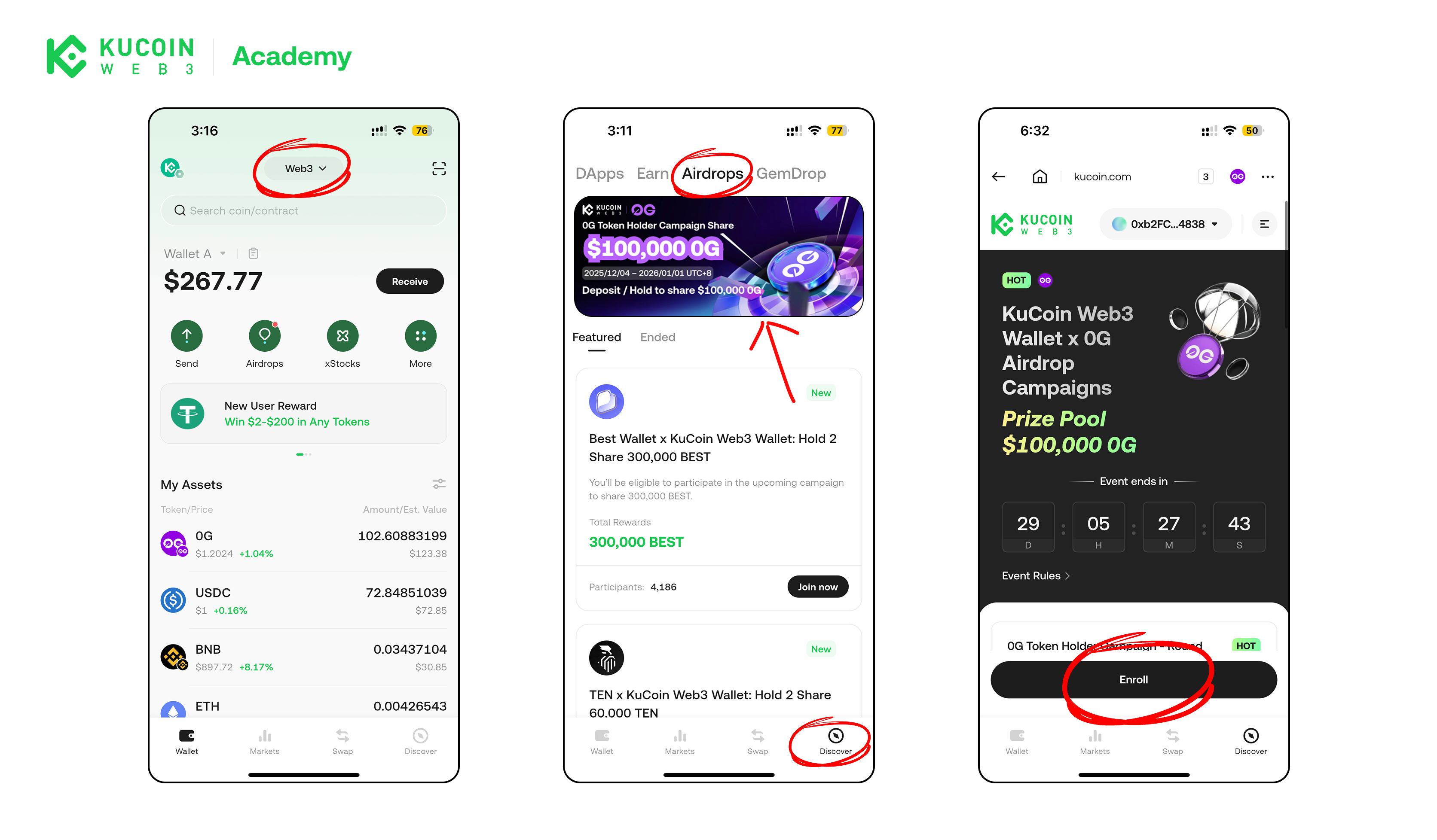 Maintain an average holding of more than 100 0G in your KuCoin Web3 wallet on 0G Mainnet during the round 3.