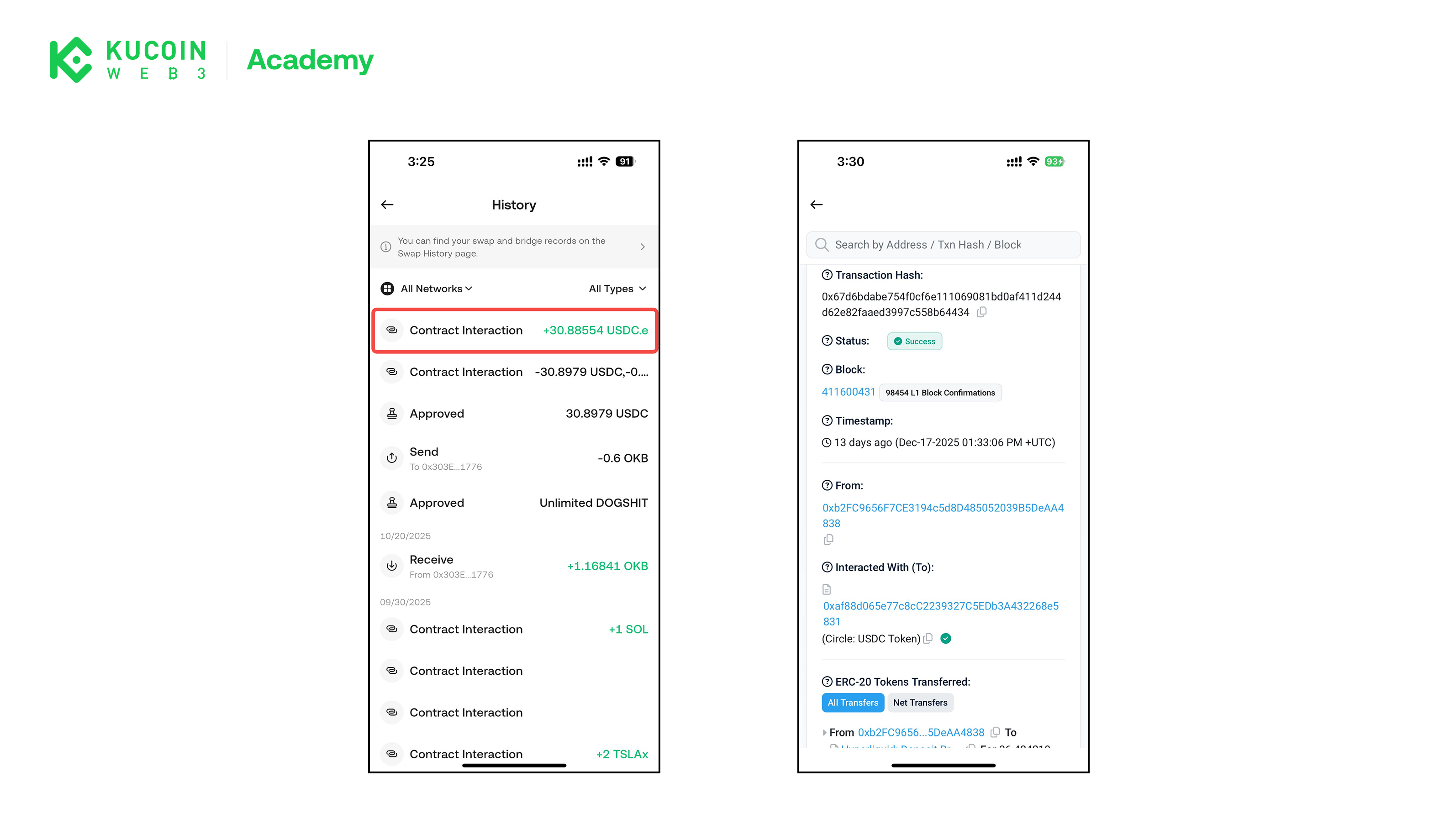 This guide explains how to view your transaction history in KuCoin Web3 Wallet and how to check detailed transaction information using a block explorer.