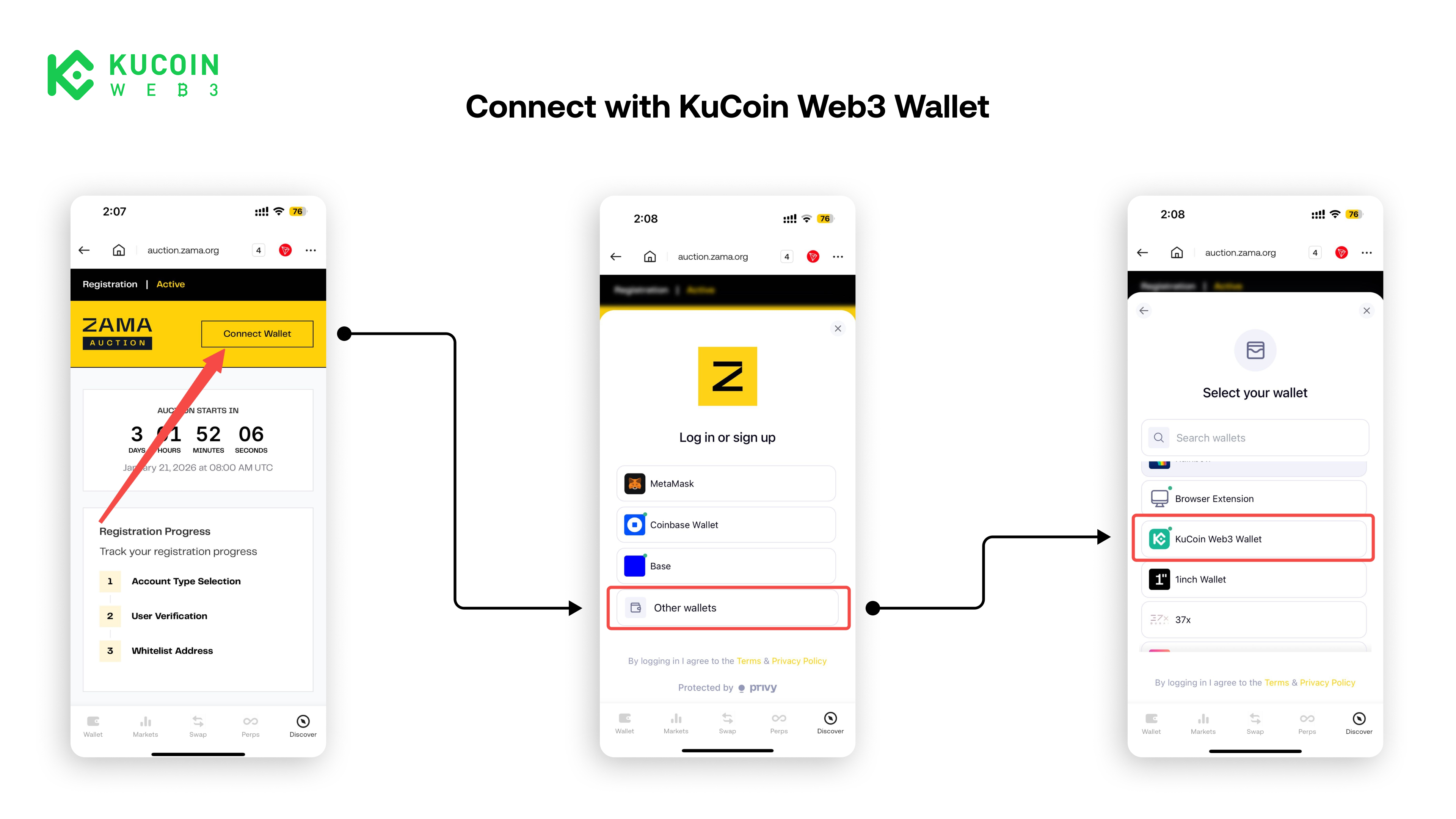 - Complete a valid ZAMA auction subscription using KuCoin Web3 Wallet (see tutorials below) or via KuCoin Exchange;