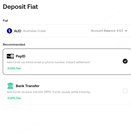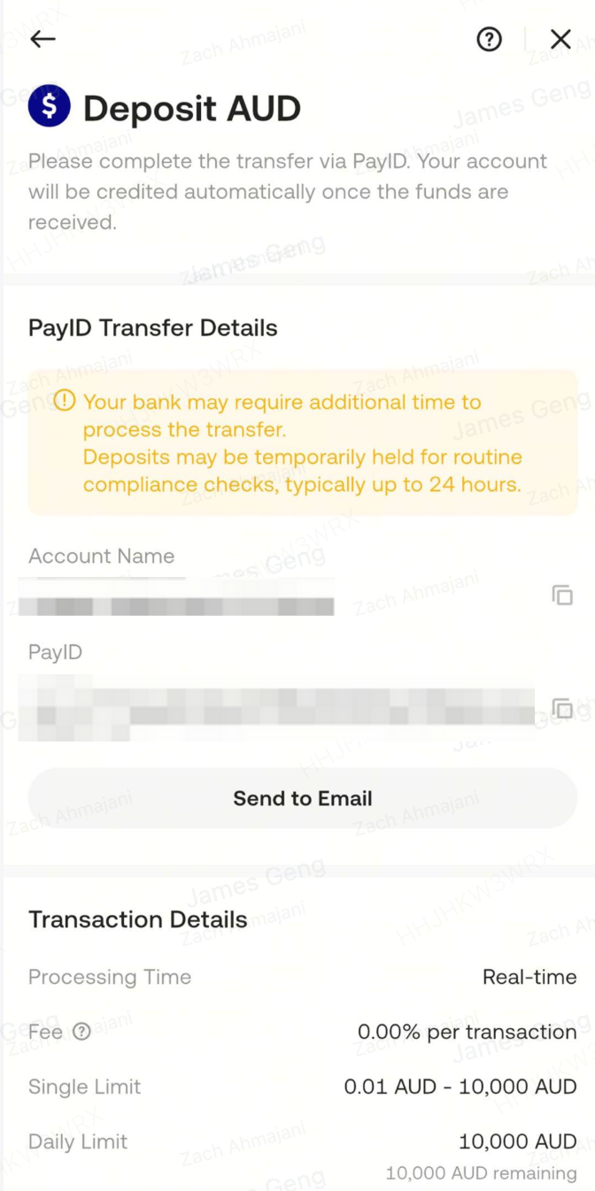 注意:PayID 充幣通常會即時處理。如有延遲,請聯絡您的銀行尋求協助。