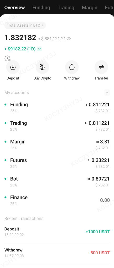 打開應用程式,前往首頁。點擊資產,然後選擇充幣。