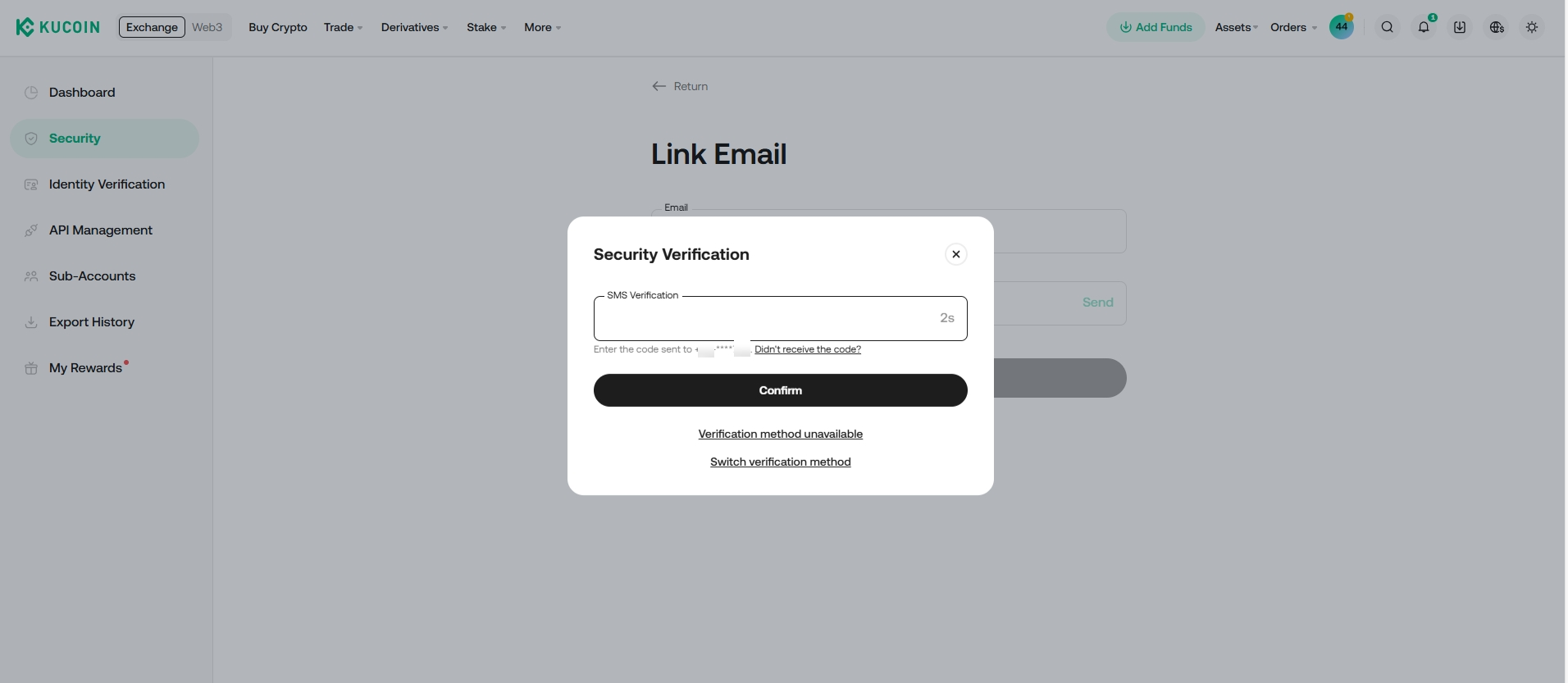 步驟 2:系統會提示您確認密鑰或輸入驗證碼,可以是 Google 2FA 驗證碼或 SMS 驗證碼。
