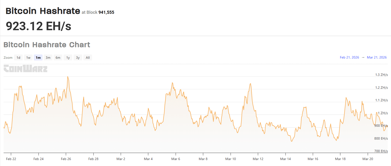 繼近期出現礦工壓力跡象後,哈希率的行為現在揭示了運營商在背後如何進行調整。平均哈希率仍維持在 900 EH/s 附近,但近期的波動顯示出不穩定,而非穩定下降。