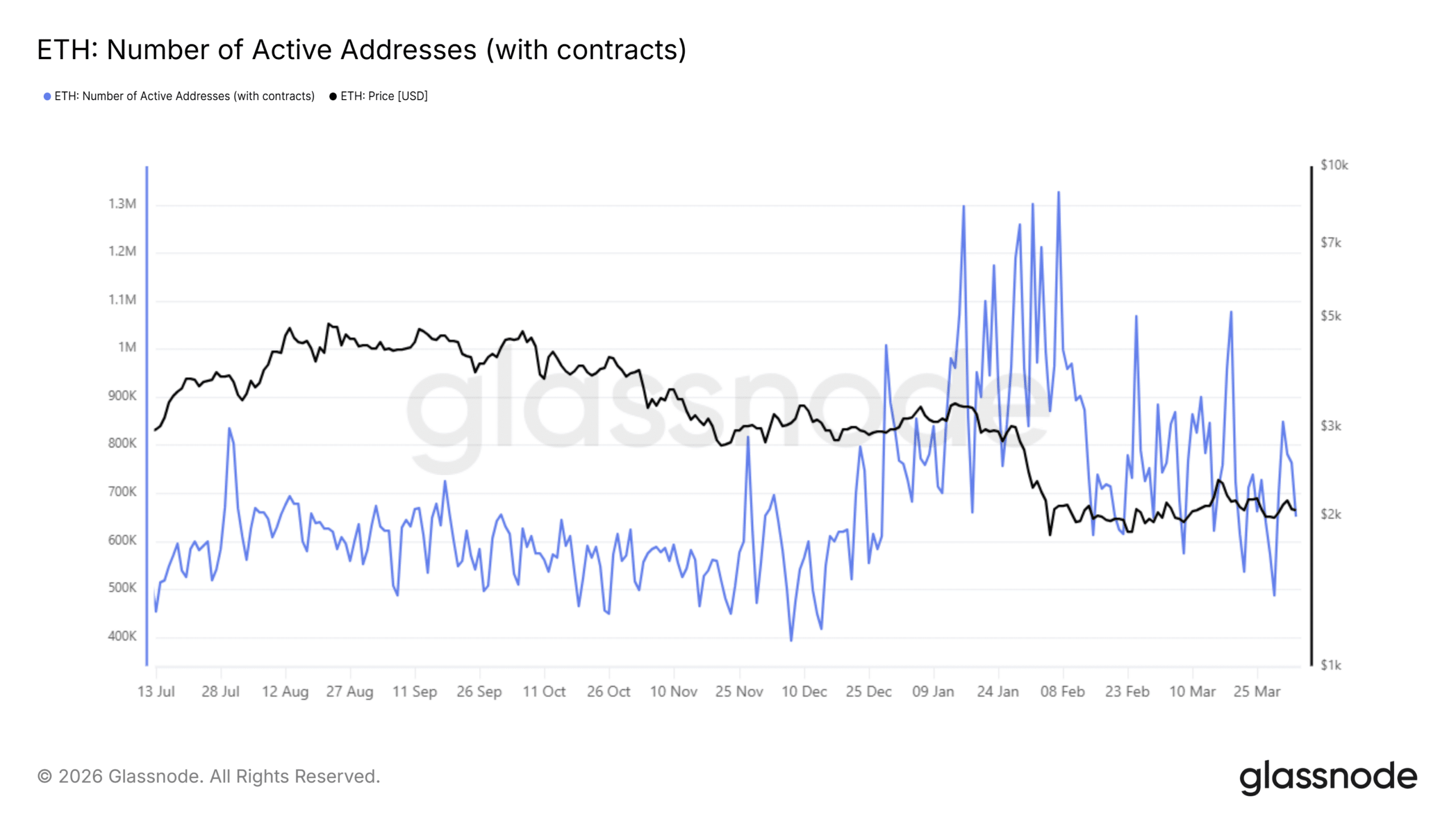 這種壓力現在體現在用戶的行為上,參與人數的增長已不再轉化為更深入的網絡使用。活躍地址為 488,000 個,證實需求仍進入網絡。