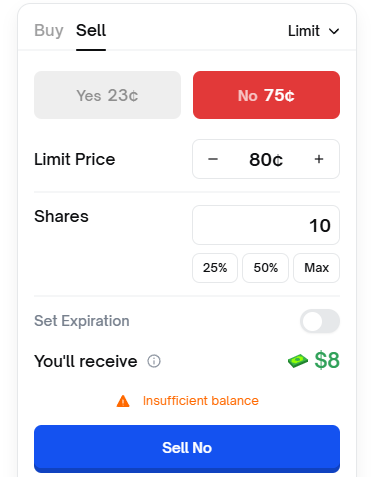 提示你餘額不足不能賣,因為你沒有 NO 的兌換券,自然賣不出去。那為什麼價格 82 的位置會有我的賣單呢?