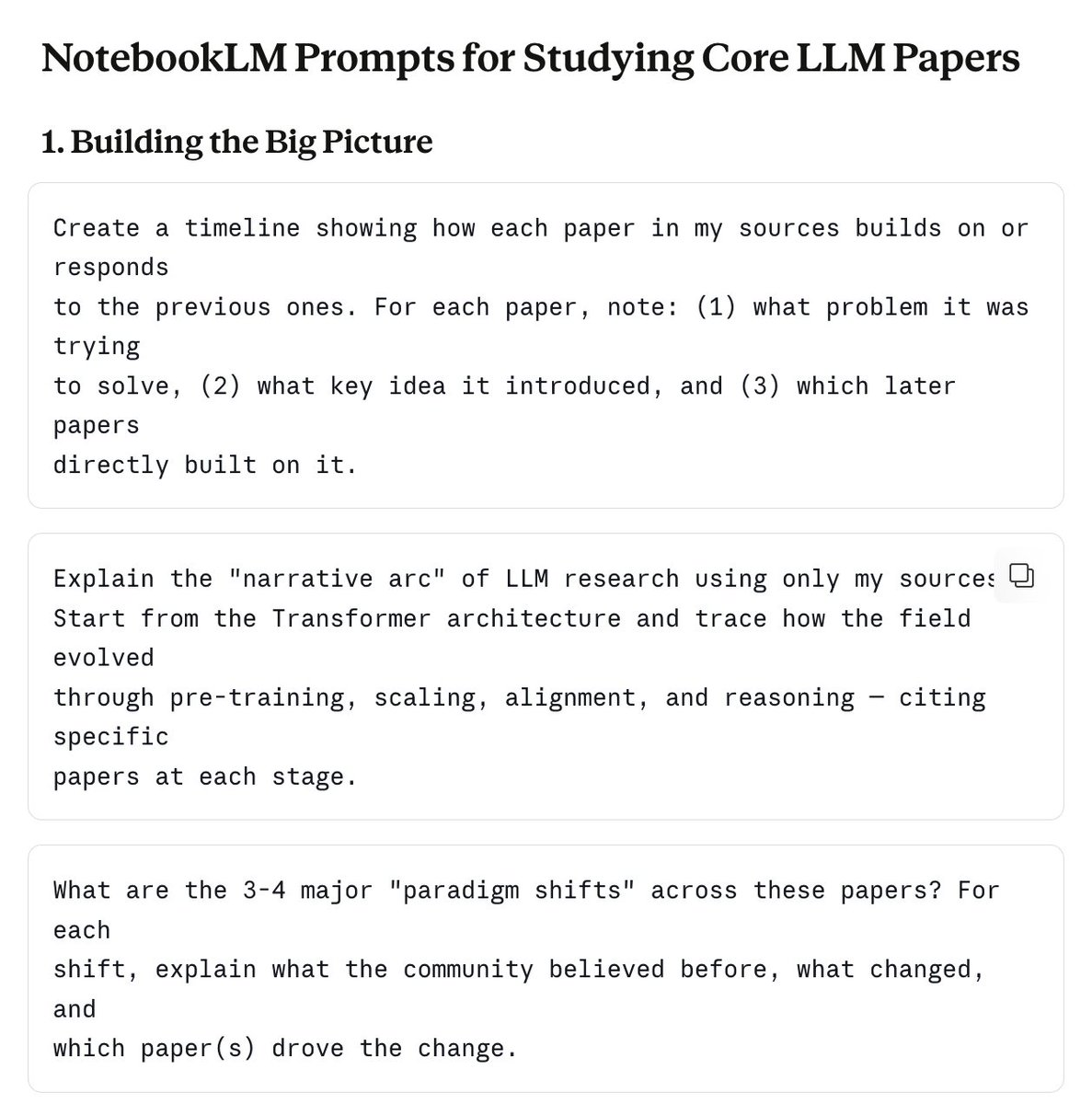 找到有價值的論文 - 放入 Notebooklm - 用 AI 工具生成提示詞 - 在 Notebooklm 裡問答學習 - 補充有價值的論文放入 Notebooklm - 在 Notebooklm 學習 - 如此反覆
