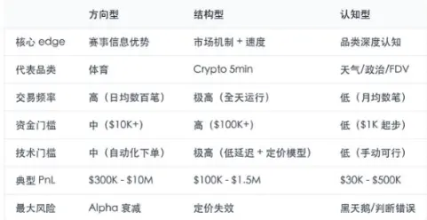 拆完以後發現,不論體育還是 Crypto,賺錢的地址分為三類。三類之間的差異不是參數不同,而是在玩完全不同的遊戲。