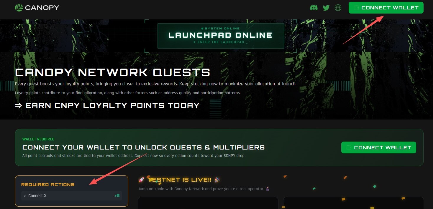 STEP 1. 進入活動介面(連結:https://rewards.canopynetwork.org/),並連接錢包、個人 X 帳號。