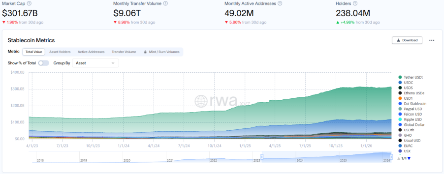 PANews 概述:穩定幣正從單一的「加密交易工具」演變為全球數字金融體系的核心基礎設施。截至2026年,全球穩定幣市場規模突破3100億美元,年度交易額達33萬億美元,其應用場景已延伸至支付、跨境結算、RWA(現實世界資產)抵押及AI驅動支付等領域。