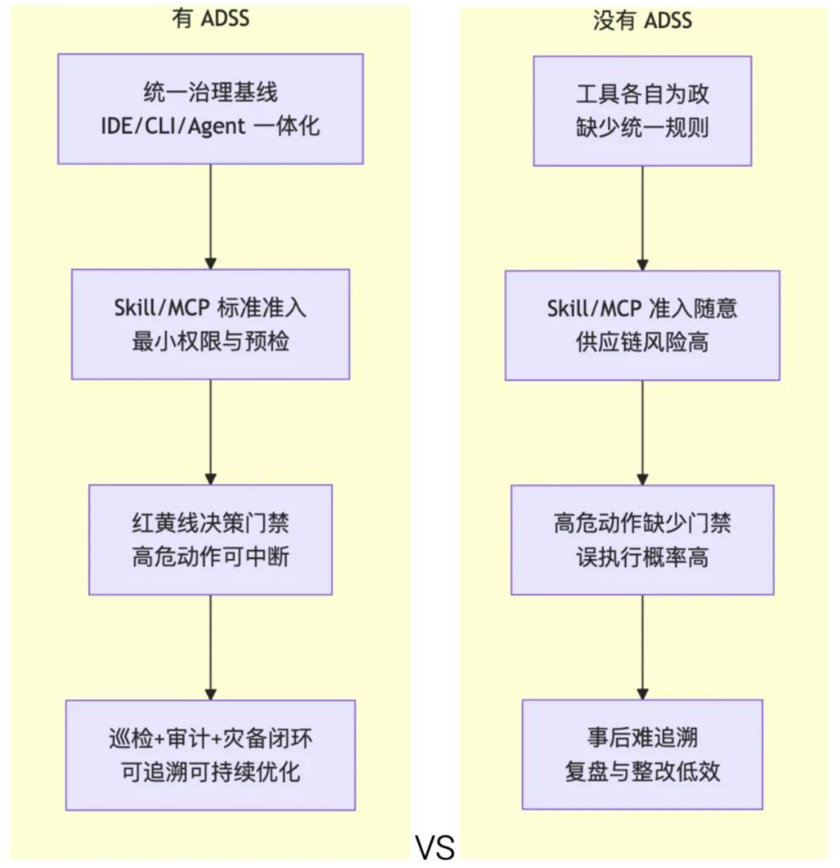 如果前述工具屬於「戰術能力」,那麼 ADSS 更像是一套系統級安全框架。其核心理念是:將零散的安全動作升級為可執行、可審計、可持續的系統化安全運營機制。