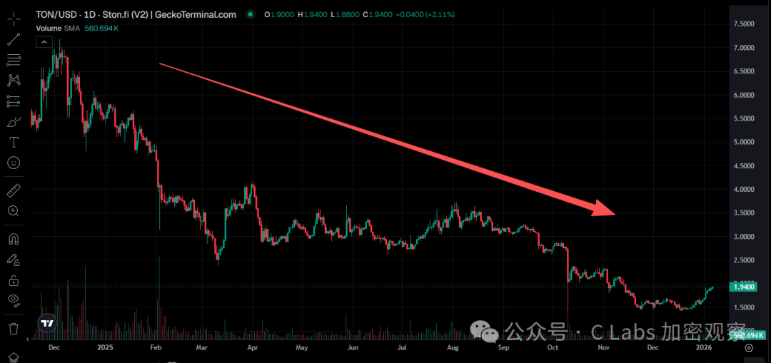 虧損並非來自主營業務的崩潰,而是由於其持有的 Toncoin(TON)在 2025 年內大幅下跌,公司對相關資產作出了帳面減記。